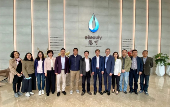 在杭州悠可化妆品有限公司,调研组一行详细听取了功能区域设置情况及服务运营情况。