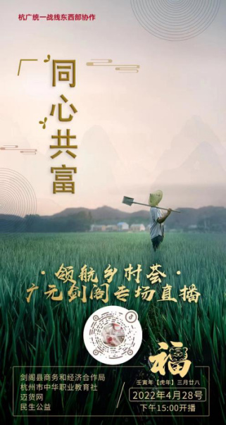 4月28日下午,在上城区帮扶剑阁县工作组与杭州市中华职业教育社的支持与指导下,剑阁县商务和经济合作局携手杭州市民生公益服务中心开展的“领航乡村荟”广元剑阁专场首场直播正式开播。