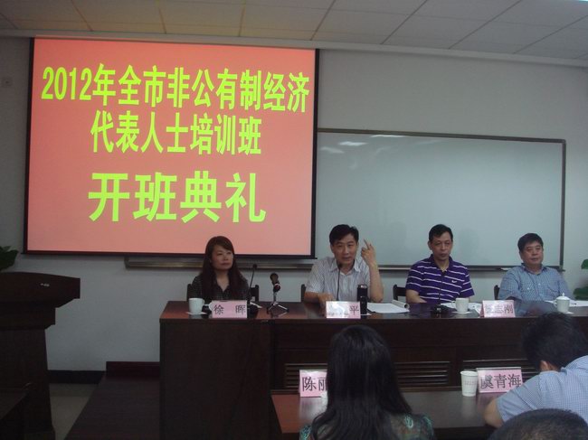 杭州市政协副主席、市委统战部部长董建平出席开班典礼并讲话。董部长在分析了当前经济形势和民营企业发展历史后指出,杭州市作为民营经济大市,民营经济的各项主要指标连续多年位居全省第一,非公有制经济已经成为促进我市经济社会发展的主要力量,整体打造民营企业家和非公经济人士的良好形象,引导企业家们勇于承担社会责任,提升企业层次,推动经济发展,是我们举办培训班的目的,希望大家珍惜学习机会,认真听、看、想,通过学习强大内心,强大企业。市委统战部副部长、市社会主义学院副院长杨志刚,市委党校副校长徐晖,原统战部副部长、市工商联党组书记孙孝明,市委统战部、市社会主义学院相关处室负责人参加了开班典礼。