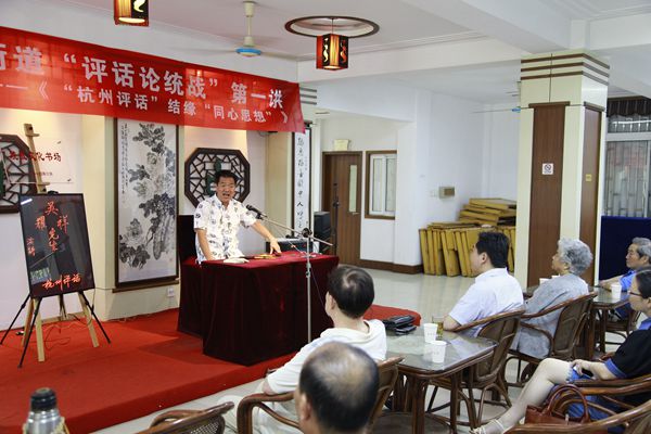 “杭州评话”是最具杭城特色的民间曲艺,自南宋以来,便在街头巷尾、茶坊酒店流传,经典名著《水浒传》、《三国志》都从“杭州评话”中吸收过素材、汲取过营养。清朝中叶,“杭州评话”得到极大发展,光绪年间的评话艺人多达200余人,至民国初年,出现了行会组织的“评话社”,一度占领杭城最主要的茶楼、书场等文娱场所。除了“讲故事”,评话艺人们还说道理、评美丑、辨忠奸、论好坏,谈古论今、针砭时弊,因为“让老百姓听了通气”,“杭州评话”的民间影响颇大。